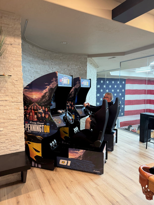 FULL-SIZE COMMERCIAL GRADE:Â Equipped with the highest quality steering wheel and pedals, 32"Â HD LCD screen, thick tempered glass, and more! We stand behind our products because we are industry leaders in quality craftsmanship and design.