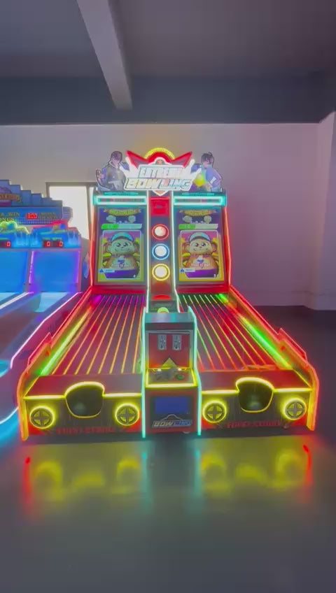 Step into the ultimate arcade experience with Extreme Bowling, the next-generation skeeball and digital bowling arcade machine that brings high-energy fun to any entertainment venue. Featuring real bowling balls, dual-player action, and a crystal-clear 55" LCD scoring screen, this game combines the tactile thrill of classic skeeball with modern digital precision. The LED-lit cabinet makes it impossible to ignore, while durable acrylic and metal construction ensures it’s built to withstand endless hours of competition. With adjustable voltage (110–220V), responsive gameplay, and a 600 kg heavy-duty frame, Extreme Bowling is perfect for arcades, family entertainment centers, bars, or anywhere fun and excitement matter. Step up, roll the balls, and watch as players compete for the ultimate high score in a dazzling LED arena!