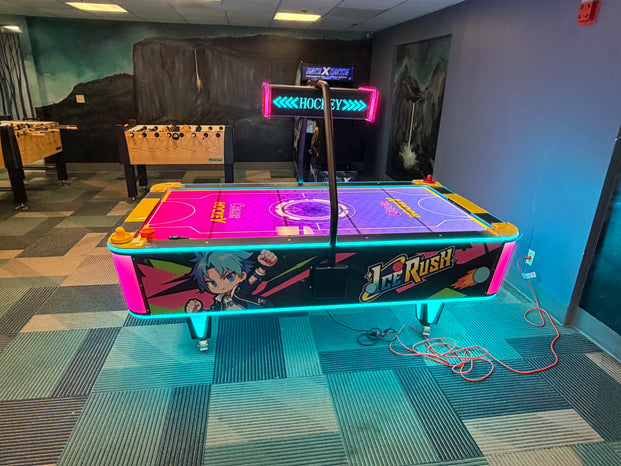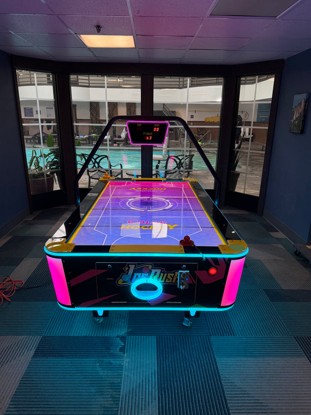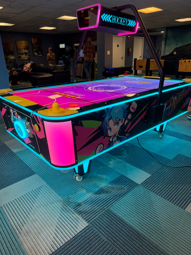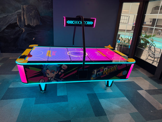 Ice Rush isn’t just an air hockey table — it’s a glowing centerpiece of competition, style, and entertainment. Perfect for arcades, businesses, or home setups, this is where speed meets style and fun meets flair.