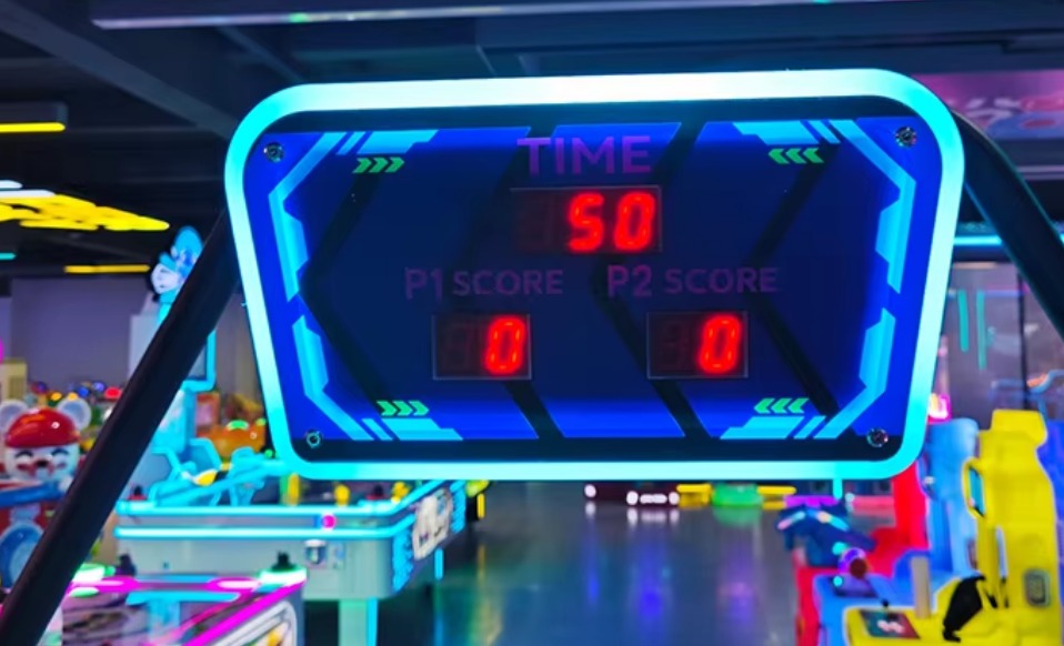 Digital LED scoreboard for real-time scoring.