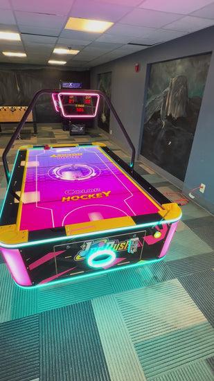 With vibrant neon cabinet lights wrapping around the table, legs, and puck return, every match feels electric. The built-in digital LED scoreboard keeps the action fair and exciting, while two ergonomic Power Paddles ensure smooth, responsive play every time. This coin-operated air hockey table is built tough for non-stop fun, featuring premium materials, precision airflow, and a durable playfield made for serious players and casual challengers alike.